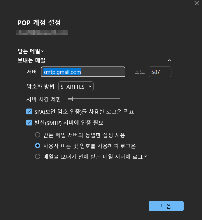 STARTTLS / TLS는 587번 포트로만 가능하다